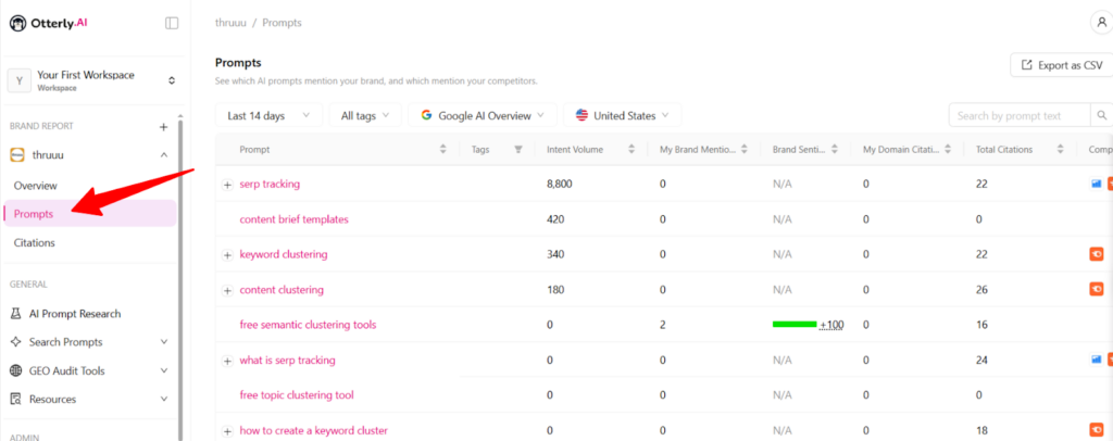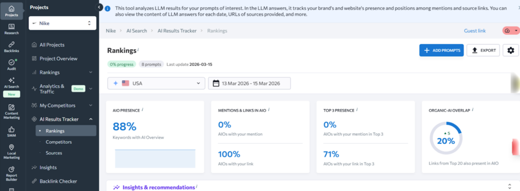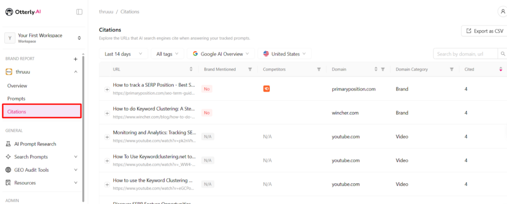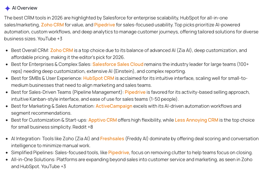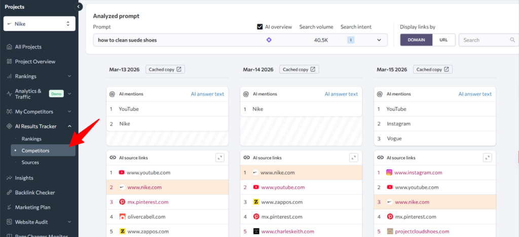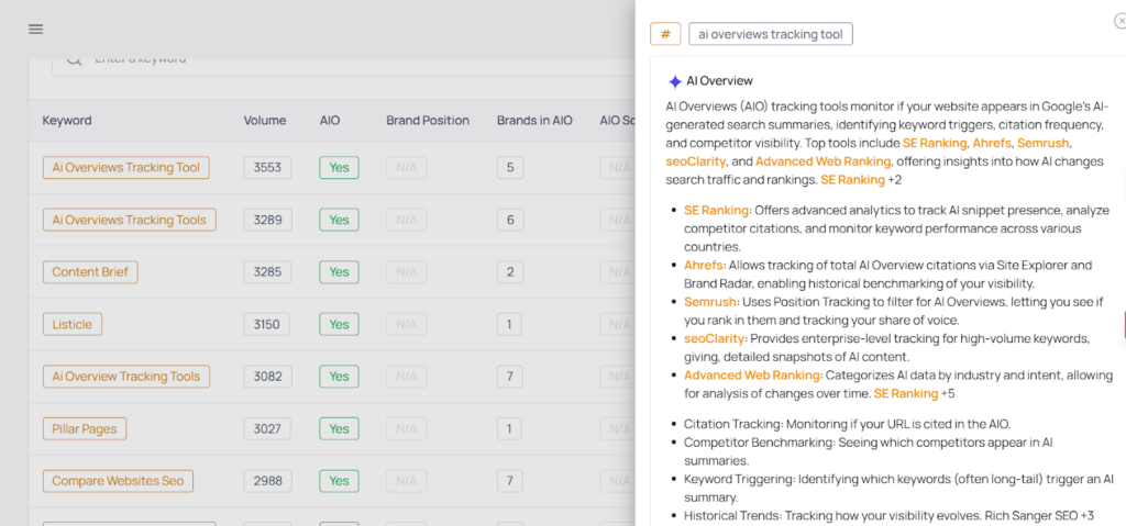 That’s why you should pick a tool that shows which of your keywords generate AI summaries that reference your brand, which competitor domains Google is citing instead of yours, and what content those pages contain.