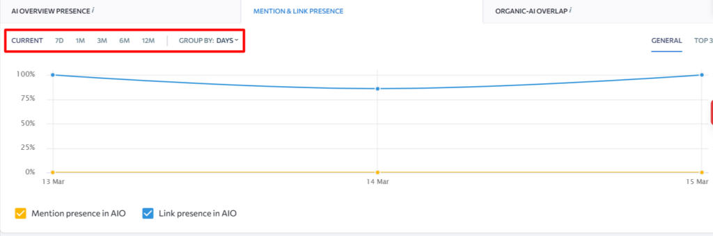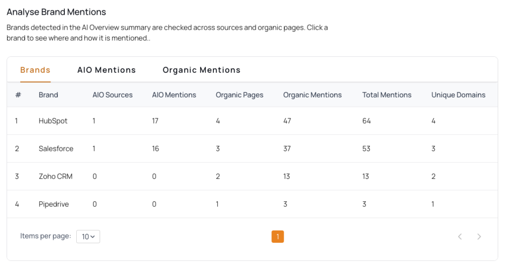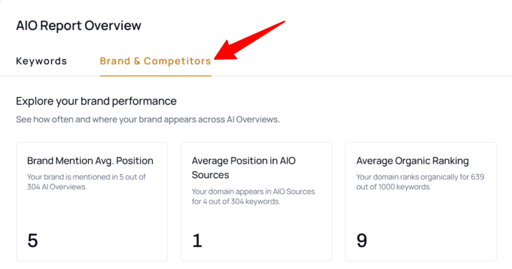 Click the “Brand & Competitors” option to see your competitors’ presence in your keyword’s AI Overviews.