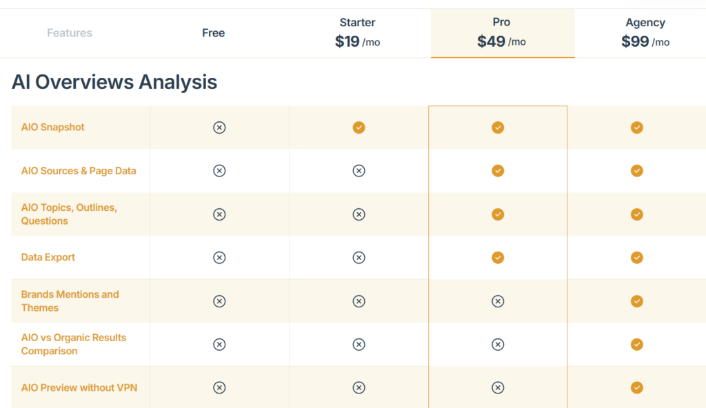 - Teams that only need AI Overview tracking: There is no AI-tracking-only plan; every user pays for the full SEO suite, including rank tracking, site auditing, and keyword research, whether they use those features or not