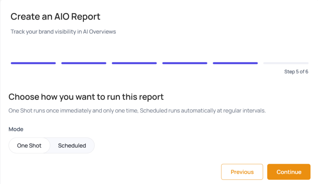 You can also monitor your AI overview visibility with thruuu on a one-shot basis for quick audits, or schedule recurring reports with email notifications for ongoing monitoring.