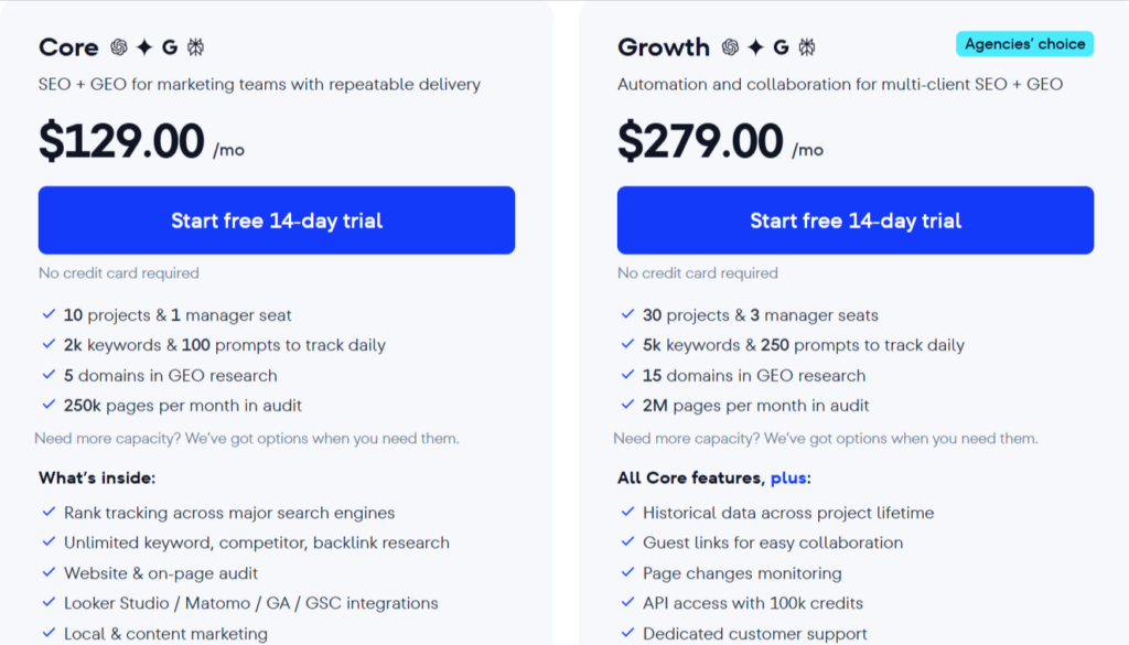 - Small and mid-sized agencies on tight budgets: Semrush pricing works best for enterprise teams
