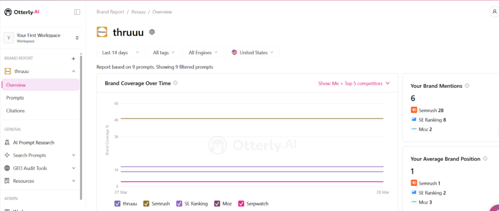 What sets thruuu apart from most tools on this list is the combination of AI visibility data and organic ranking data in a single report. You can see a keyword where you rank #3 organically but never appear in the AI Overview, and immediately identify the gap. Most trackers show you one or the other.