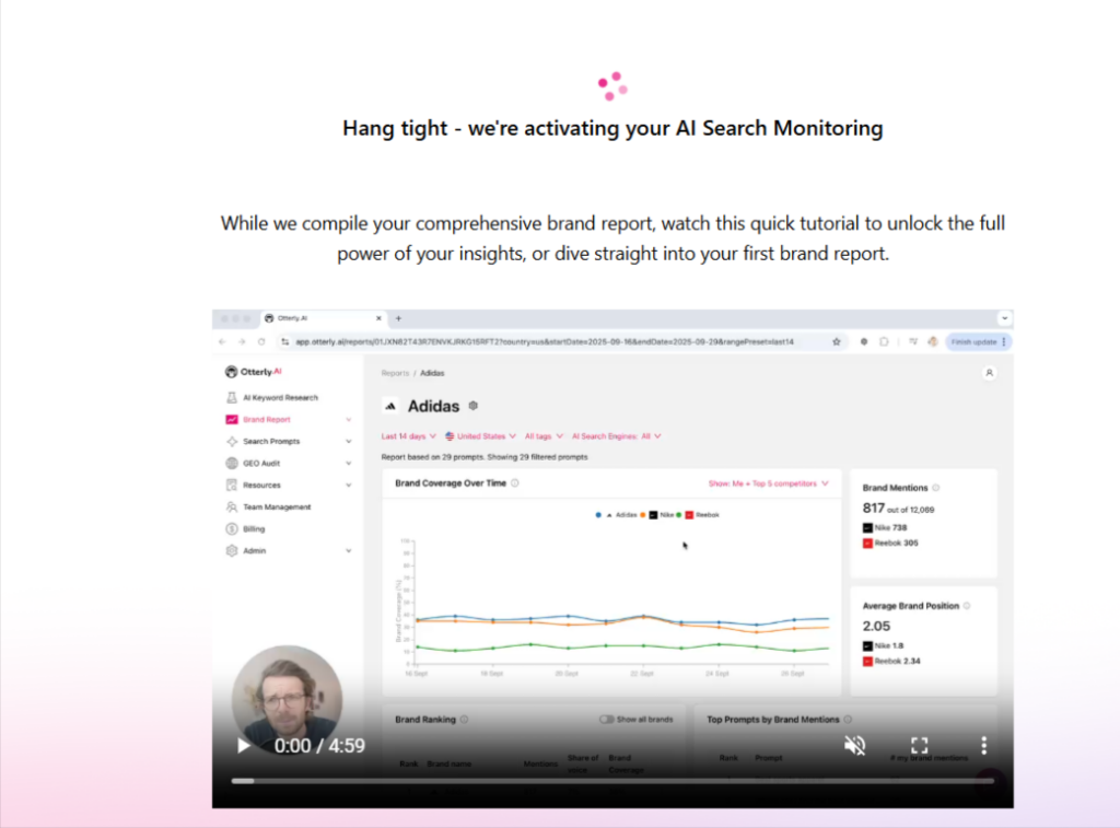 Even though the tool’s output is great, our first experience testing it wasn’t up to par. Otterly’s was a loading spinner that clearly had no idea how long it should stay on screen.