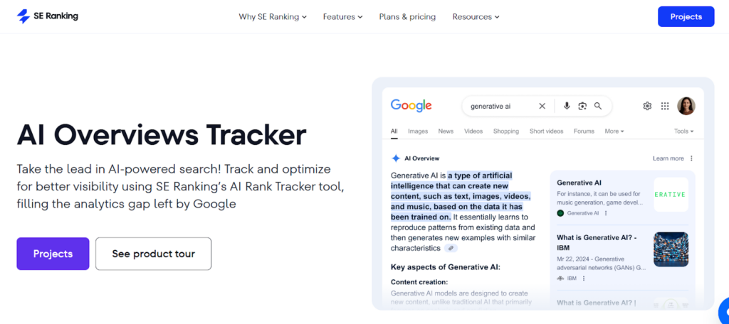 SE Ranking also shows which of your tracked keywords trigger AI Overviews.