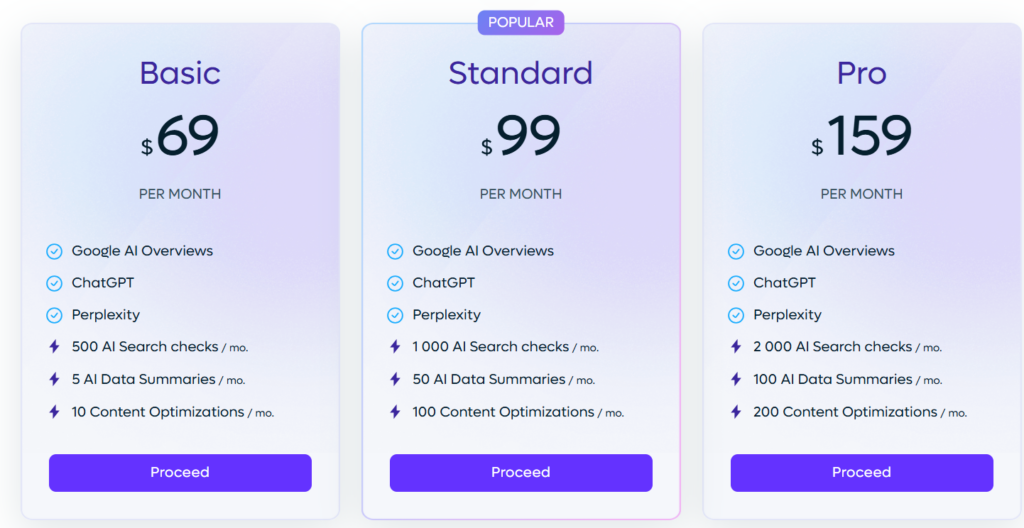 SE Ranking’s AI Search feature is an add-on to the main plans: