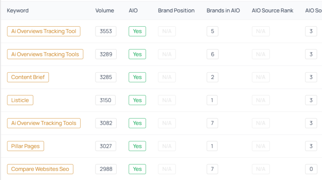 Pro tip: Start with keywords you already rank in the top 10 organically. These are your highest-priority opportunities because you are visible in traditional search but may be absent from the AI layer sitting above your position.