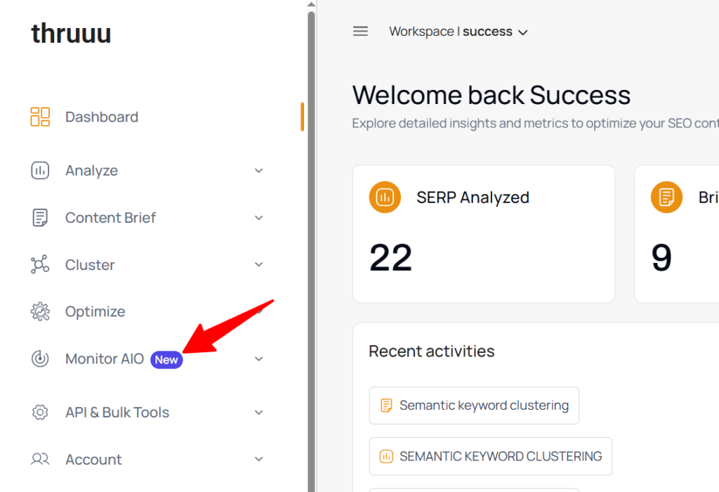 Sign up for thruuu and click “Monitor AIO > Create AIO Report” in the left-side bar drop-down menu.
