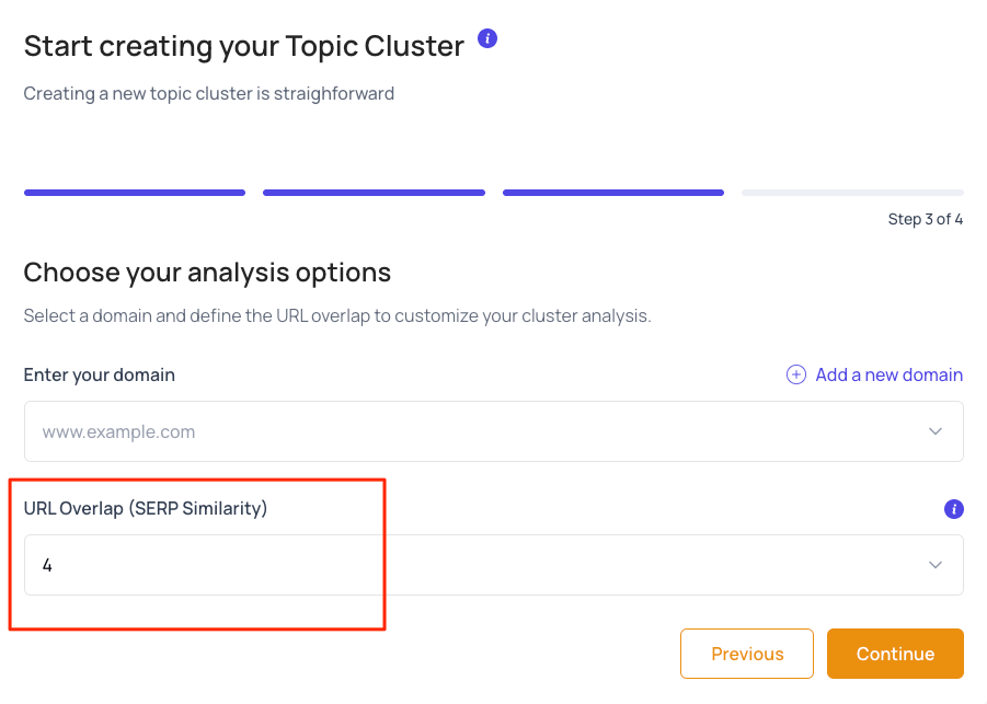- URL Overlap Control: Adjust how closely keywords must align in Google’s top results, from broad themes to near-identical SERPs.