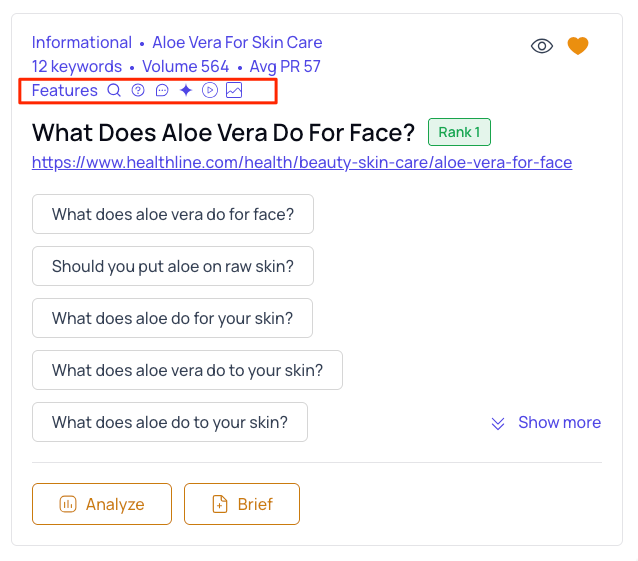 Each cluster now includes visibility data for Google’s rich results, giving you a complete view of how your topics appear beyond standard blue links.