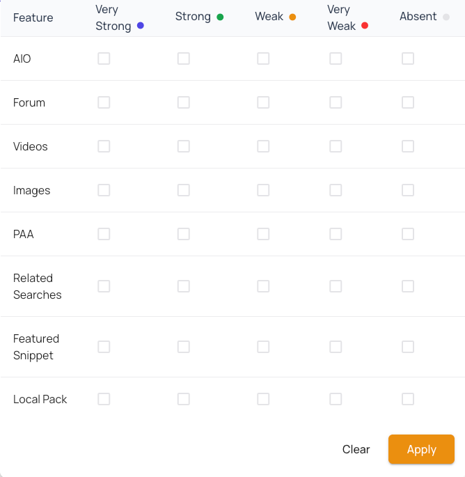 - Filter clusters by SERP feature type to focus on the most impactful opportunities