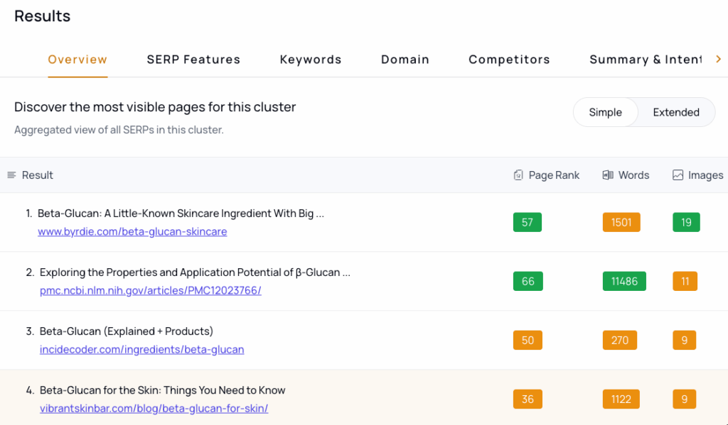The Mixed SERP combines the top-ranking results of all keywords in a cluster, giving you a consolidated view of how Google understands that topic.