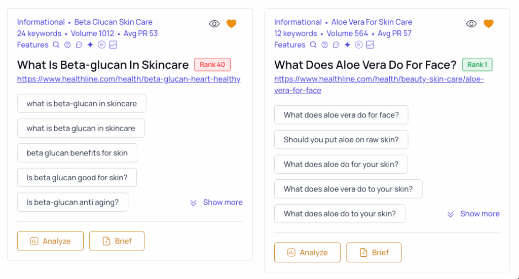 - Integrated Content Workflow: thruuu isn’t just a clustering tool. It is connected to a powerful content brief and audit system, allowing you to:
