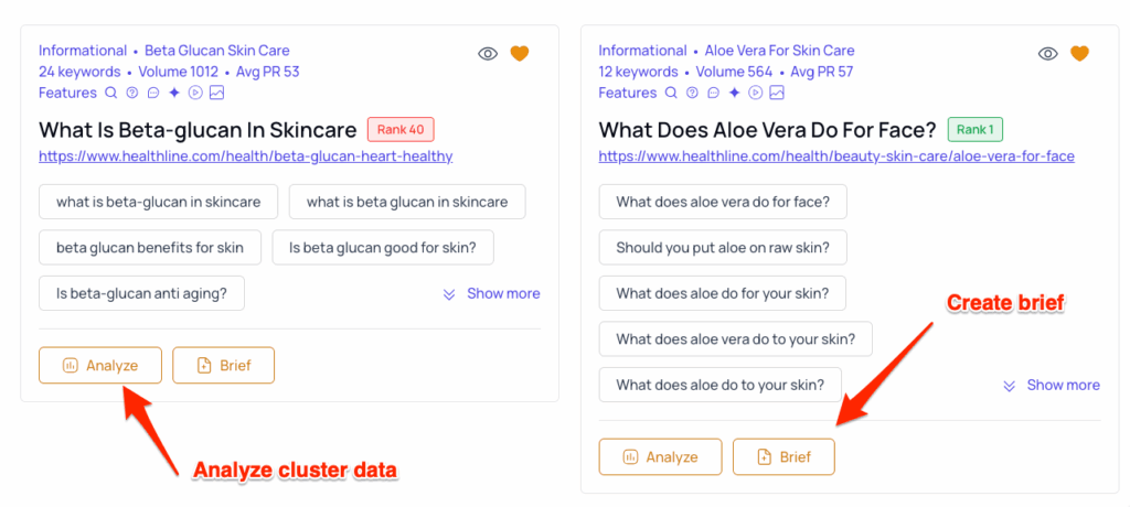 - One cluster = one article: Each cluster represents a clear topic opportunity — use it to plan or update a single piece of content.