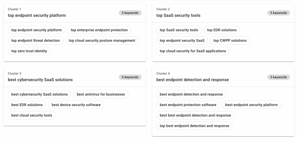 For instance, in the cybersecurity SaaS space, terms like “cloud security software,” “cloud security compliance tools,” and “cloud security solutions for enterprises” are semantically related because of their conceptual relationships.
