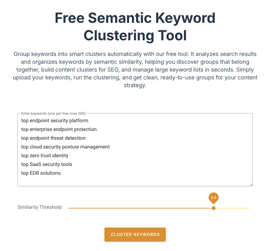 This tool analyzes search results and organizes keywords by semantic similarity in seconds.