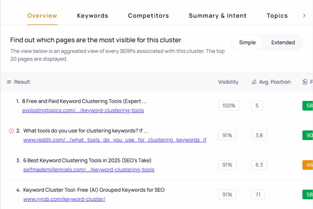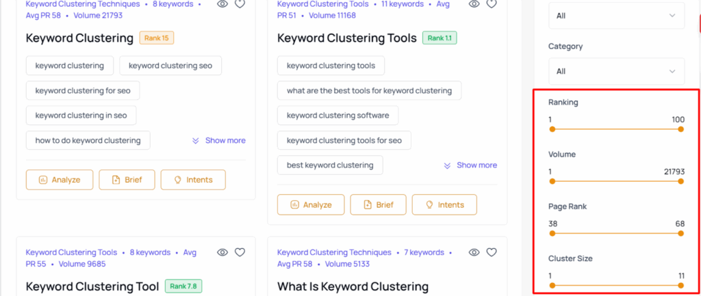 That’s why you need a premium keyword clustering tool that groups keywords by search intent as Google interprets them.