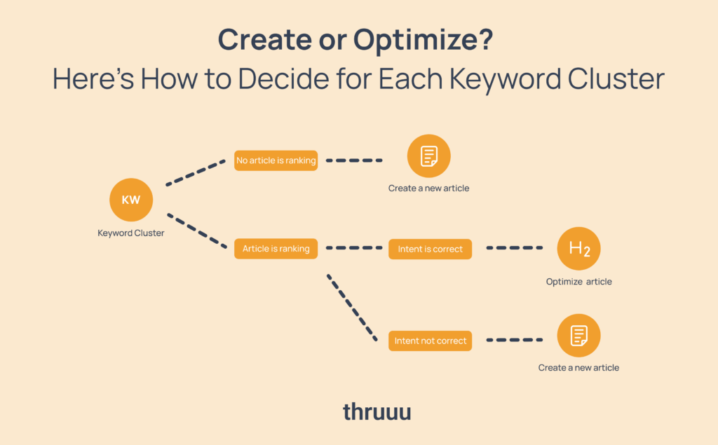 SEO keyword mapping is our secret hack at thruuu that helps us identify which pages should be optimized, created, or left aside.