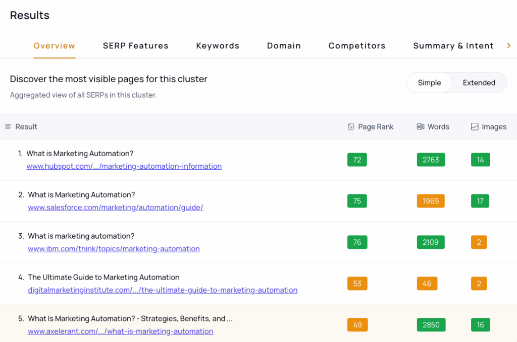 This analysis helps you identify the strongest competitors, recurring patterns, and content structures that perform well.