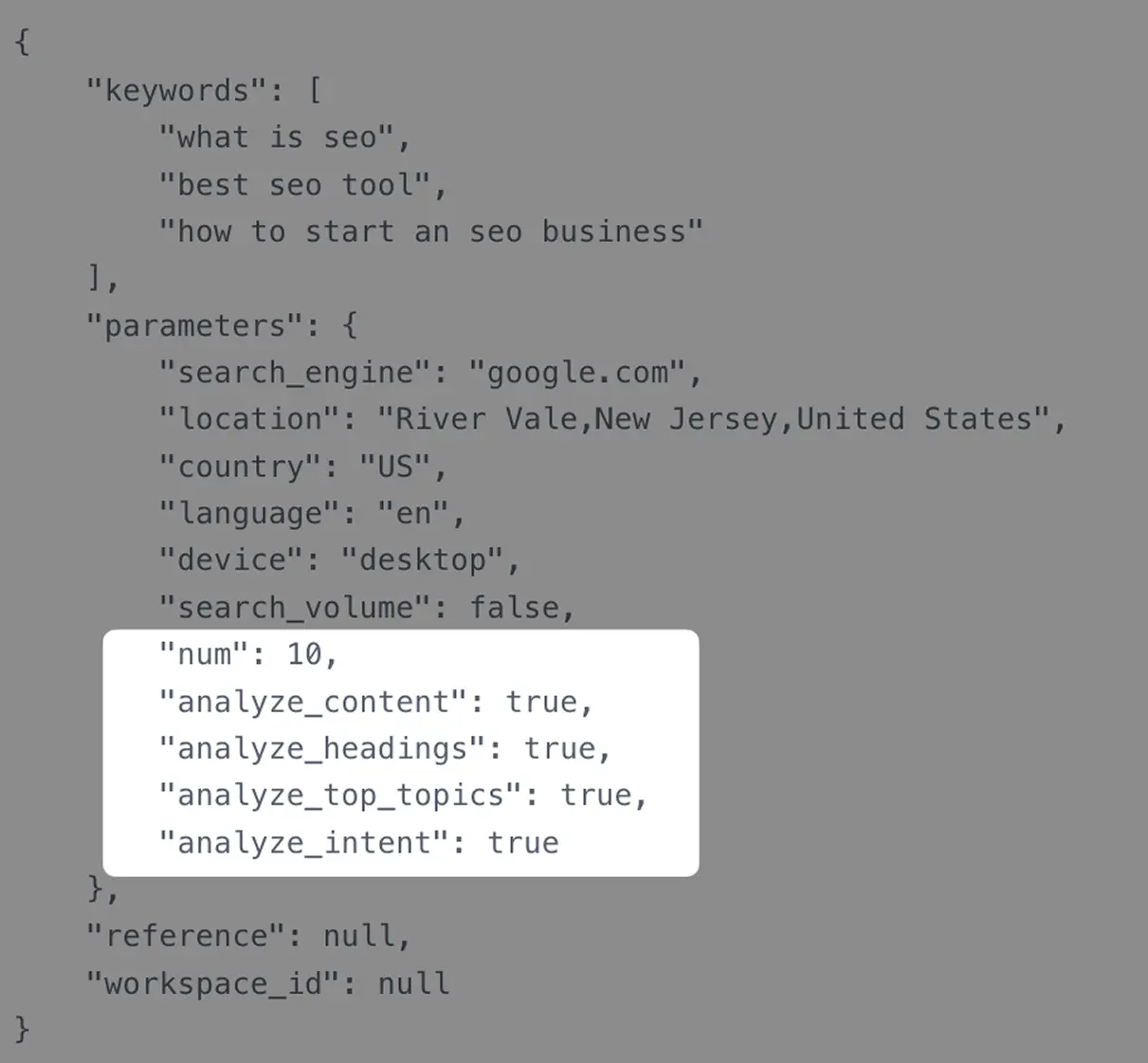 Get structured JSON responses with full SERP data, content brief elements, or on-page metrics. Feed your dashboards, reports, or content systems.