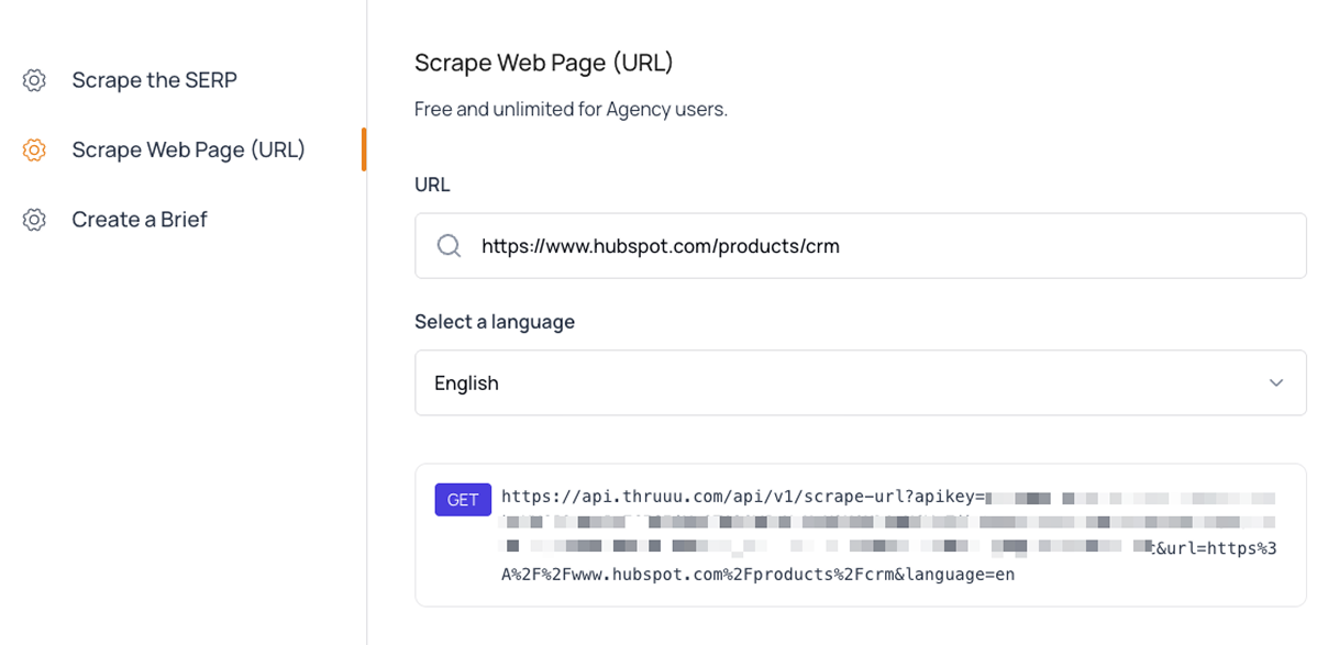 thruuu does the heavy lifting: scrape the SERP, fetch all 100 pages, extract on-page data, and return structured content intelligence in a single response.